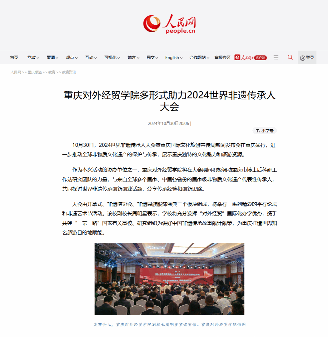 人民网报道重庆对外经贸学院多形式助力2024世界非遗传承人大会