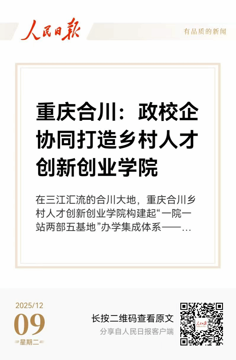 《人民日报》等媒体报道重庆合川:政校企协同打造乡村人才创新创业学院