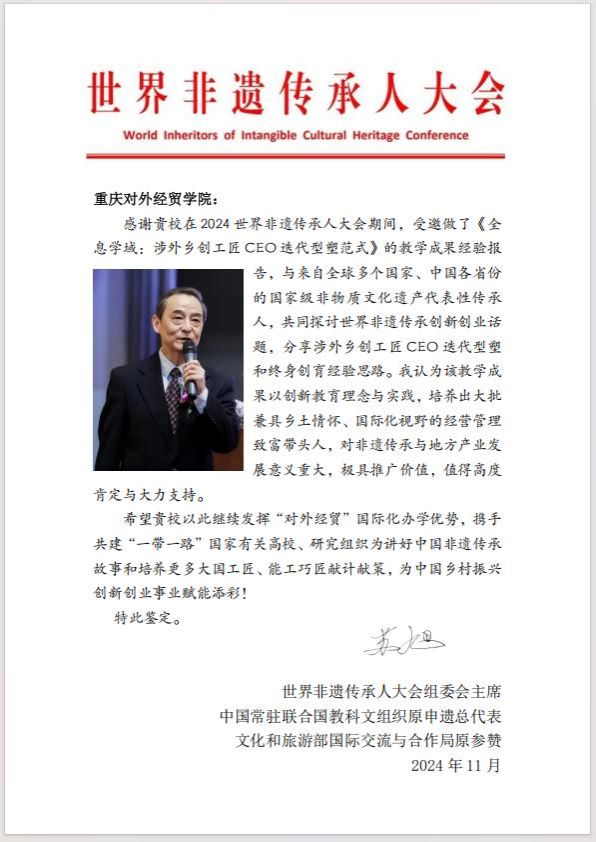 世界非遗传承人大会组委会主席苏旭推荐本教学成果奖